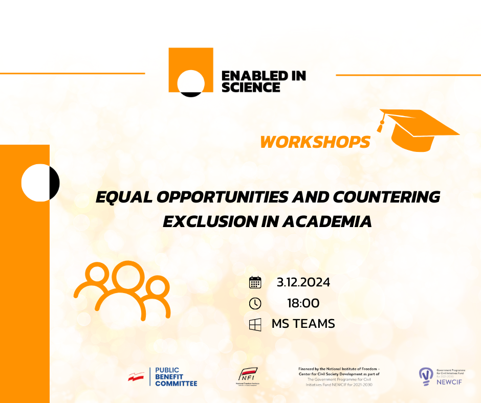 📣We would like to invite you to a free online training course entitled: Equal Opportunities and Countering Exclusion in Academia, which will be held on December 3 (Tuesday) at 18:00 via MS Teams.
